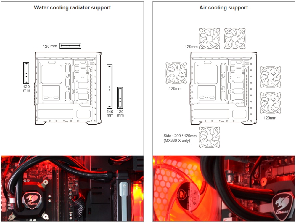 | Outstanding Airflow ด้วยความสามารถในการรองรับหม้อน้ำ 240 มม. ที่แผงด้านหน้าและเพิ่มอีก 5 พัดลม MX330-X จะก้าวต่อไปอีกขั้นหนึ่งและรองรับแพัดลมได้ถึง 6 ตัว MX330 นำเสนอโซลูชั่นระบายความร้อนที่ยอดเยี่ยม กรณีนี้จะช่วยให้คุณสามารถสร้างคอมพิวเตอร์ในฝันของคุณได้ ตัวกรองฝุ่นที่สามารถทำความสะอาดง่ายและถอดออกได้ที่ด้านหน้า, ด้านบนและด้านล่างซึ่งจะช่วยให้คอมพิวเตอร์ในฝันของคุณสะอา� � |