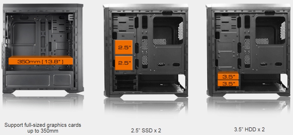 | Aesthetically Simplicity PSU และฝาครอบช่อง 3.5 "ไม่เพียงช่วยให้คุณมองเห็นได้ชัดเจน แต่ยังสามารถซ่อนสายที่ไม่สวยได้อีกด้วย ระบบจัดการสายเคเบิลแบบอัจฉริยะช่วยให้สายเคเบิลทั้งหมดอยู่ด้านหลังถาดเมนบอร์ดช่วยให้อากาศไหลเวียนได้อย่างไม่มีอะไรขัดขวาง ด้วยหน้าต่างโปร่งใสและ PSU และฝาครอบช่อง 3.5 "คุณสามารถเพลิดเพลินไปกับระบบในฝันของคุณได้ ไม่มีอะไรที่จะขัดขวางคุณจากการได้เห็น� �ะบบของคุณเมื่อคุณต้องการแสดงให้คนอื่นเห็น |