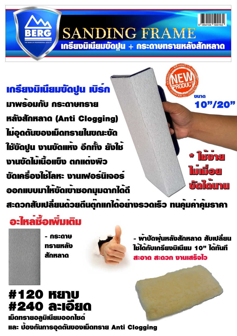 อย่ารอช้า BERG เกรียงมิเนียมขัดปูน พร้อมกระดาษทรายหลังสักหลาด ขนาด 10 นิ้ว(1อัน/กล่อง) ราคาแรงสุดสุด เพียง บาท ส่งฟรี!!!