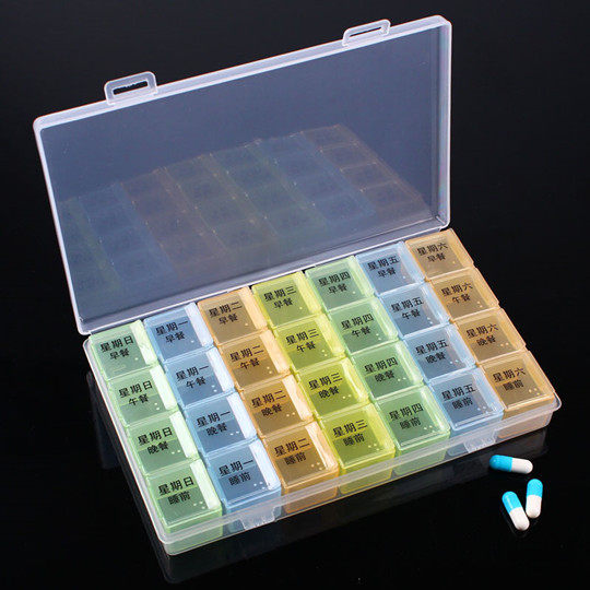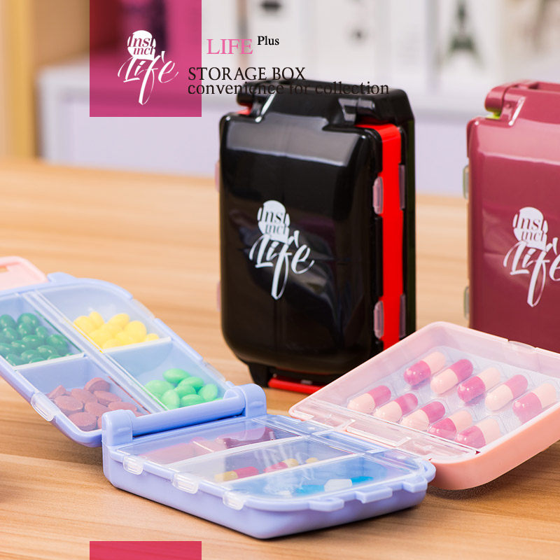 พลาสติกแบบพกพาแบบพกพาจัดเก็บแท็บเล็ตกล่องยากล่องแบบพกพาซึ่งมีหลายชั้น 8 ห้องถือกล่องยาเม็ด Moistureproof (สีแดง)