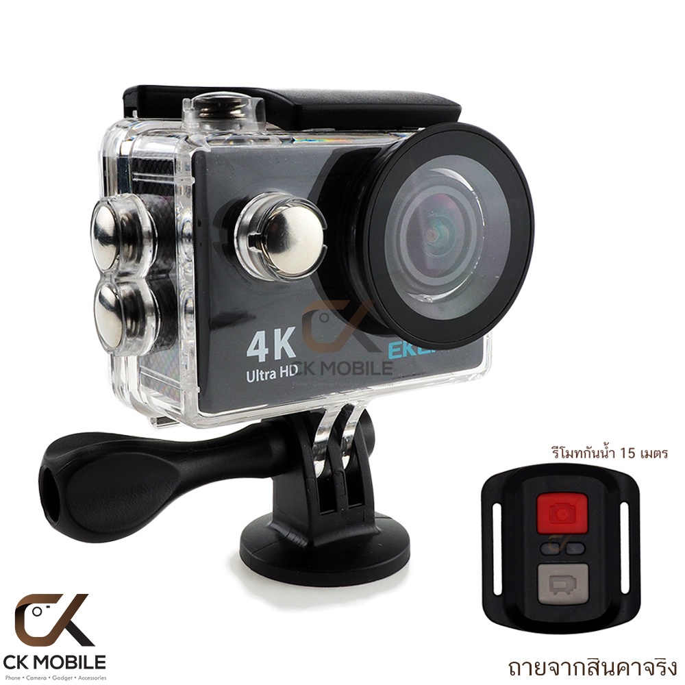 EKEN คือกล้องวีดีโอขนาดเล็กที่พร้อมลุยไปกับคุณในทุกสถานการณ์ สำหรับรุ่น H9R (Remote) นี้สามารถสั่งงานให้ถ่ายวีดีโอหรือถ่ายภาพนิ่งได้ โดยรีโมทเป็นแบบ 2.4G รัศมีการทำงานประมาณ 10-15 เมตร อุปกรณ์ม� �ตรฐานภายในกล่องมาพร้อมกับเคสกันน้ำลึก 30 เมตร และอุปกรณ์ยึดติดแบบต่างๆที่สามารถประยุกต์ใช้งานได้หลายรูปแบบ พร้อมให้คุณพกพานำไปใช้งานในที่ต่างๆได้อย่างสะดวกรวดเร็ว ด้วยผลลัพท์ที่ให้คุณภาพไฟล์วีดีโอที่ดีที่สุดในกล้องระดับเดียวกัน