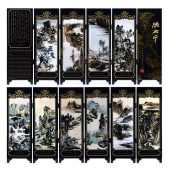 อย่ารอช้า MINI Folding Screens 6 Joined Panels Double-sided DecorativePainting Wood Byobu 48 x 24cm Chang Dai-chien Landscape PaintingBlack ราคาแรงสุดสุด เพียง บาท ส่งฟรี!!!