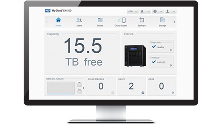 | My Cloud OS - content management made simple WD's My Cloud OS delivers a suite of tools and apps that empower you to easily take control of the content that matters to you most. The intuitive, easy-to-use dashboard makes set up, managing storage and personalizing your NAS effortless. Our award-winning My Cloud app allows you to securely access and share your files from anywhere with computers, tablets and smartphones. And with popular third-party apps available for download, you are enabled to customize your NAS to best fit your needs. | |