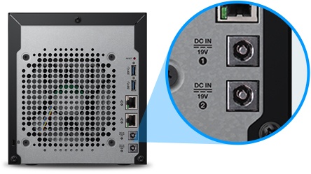 | A power supply with a backup plan My Cloud EX4100 comes equipped with dual power ports offering you the option of adding a second external power supply that will take over should the first power supply fail, giving you uninterrupted access to your content. | ![]() |