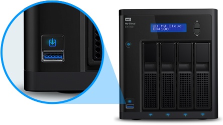 ![]() | Automatically copy your external USB with the touch of a button With the built-in, one-touch copy button conveniently located on the front of the NAS, you can automatically copy all the photos, videos and music you have stored on an external USB or camera to the My Cloud EX4100, keeping all your media and files in one safe, central location. |