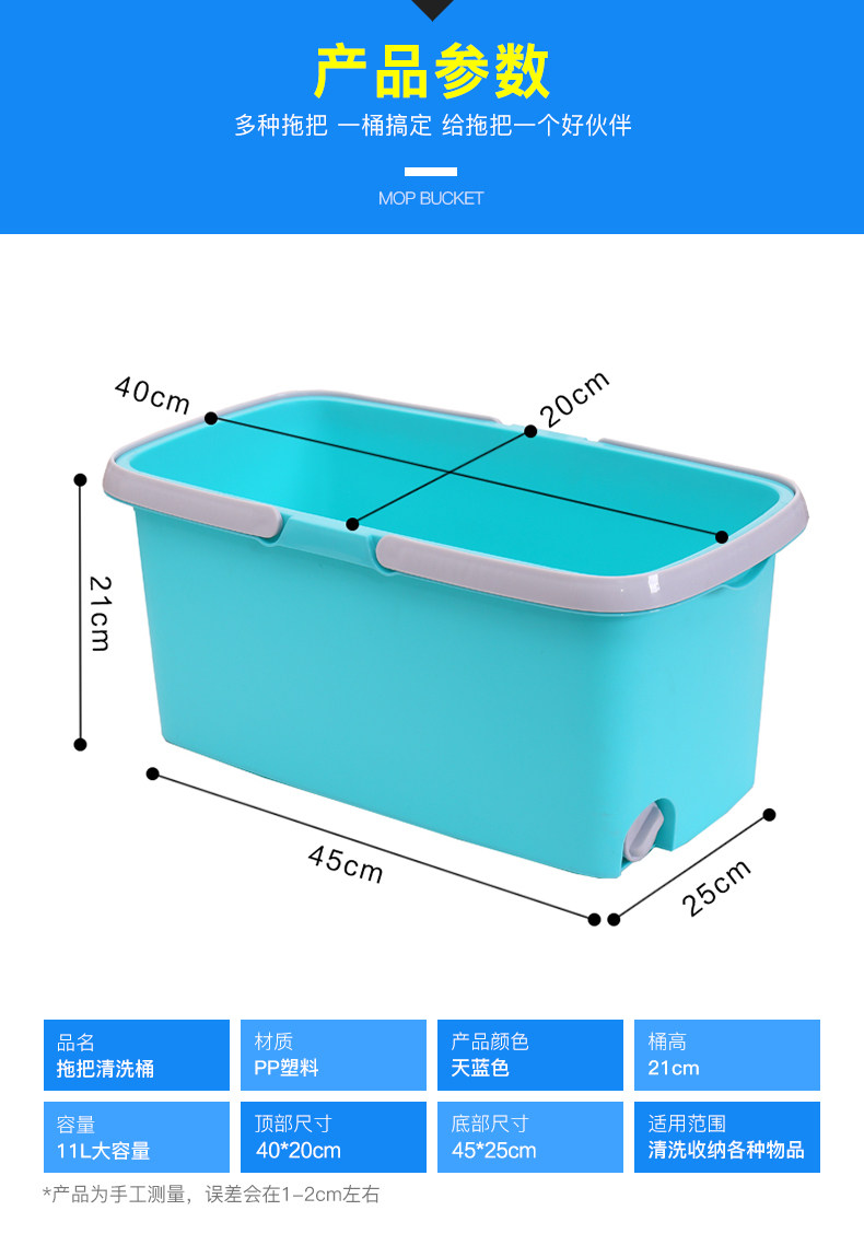 อย่ารอช้า 11L Rectangular wash towel bucket thick squeeze bucketMulti-function square bucket Drag and drop bucket Slide thickplastic bucket size:45x25x21cm - intl ## ส่งฟรี รีบจัดด่วน
