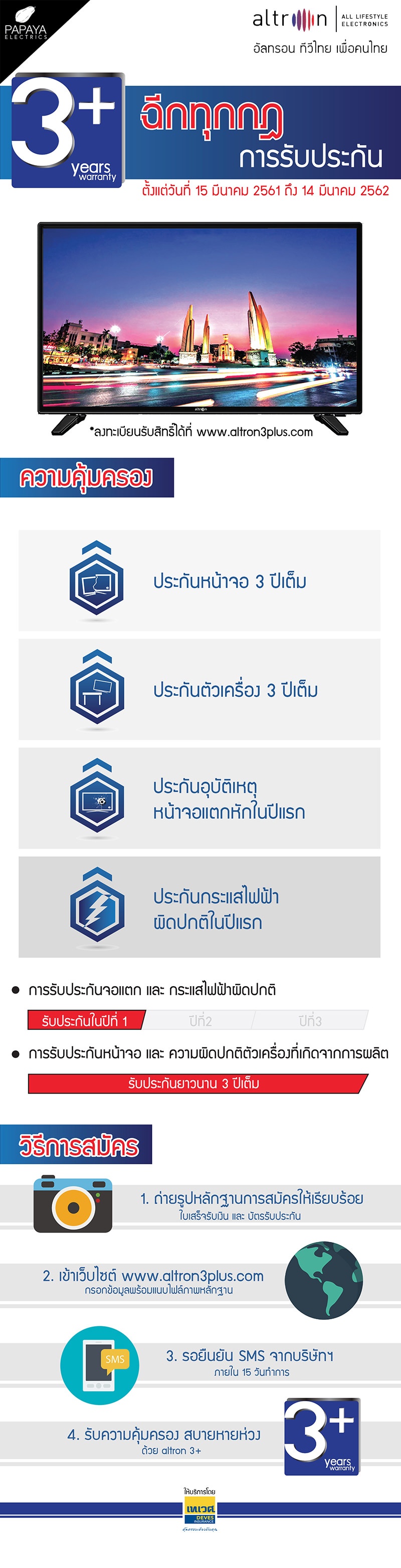 - รับประกัน 3 ปี พร้อมกับความใส่ใจด้วยศูนย์บริการอัลทรอนทั่วประเทศไทย