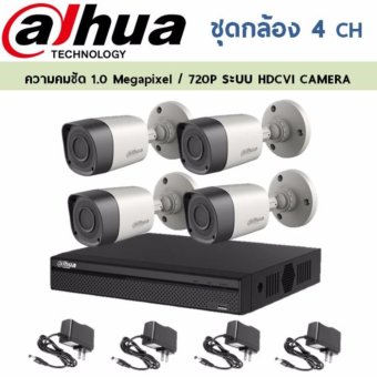 อย่ารอช้า DAHUA ชุดกล้องวงจรปิด 4 กล้อง ความละเอียด 1.0 Megapixel ระบบ HDCVI(เหมาะสำหรับติดตั้งภายนอกและภายในอาคาร) ## ส่งฟรี ราคาล่าสุด
